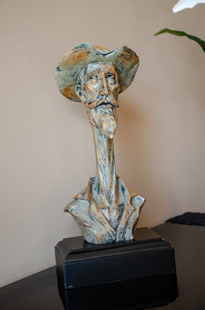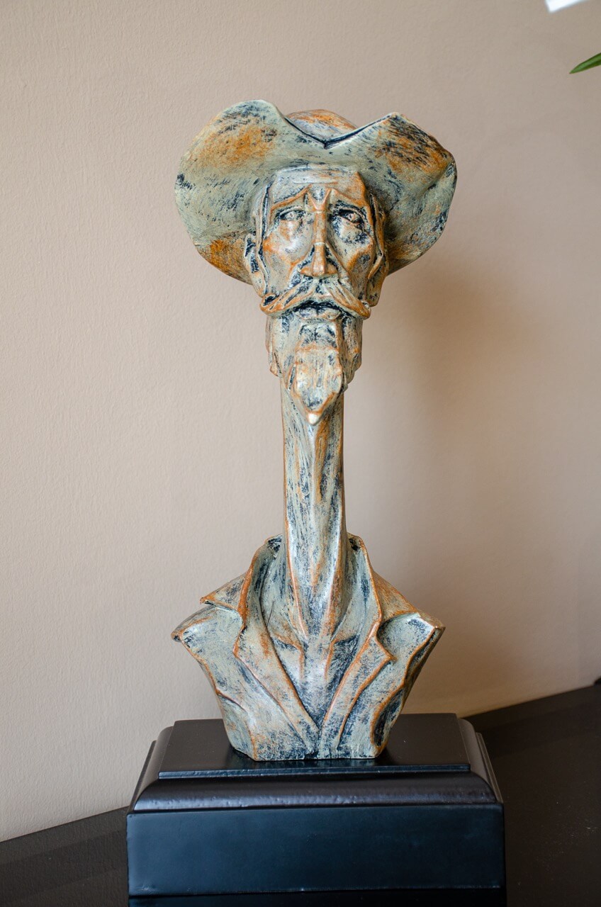Ez a csodálatos quixote ősi figura, kalappal, szakállal és bajusszal rendelkező férfifej egy igazi műalkotás. A kiváló minőségű műgyantából szakszerűen kidolgozott, tartós és részletgazdag, megragadva az ikonikus irodalmi karakter lényegét.